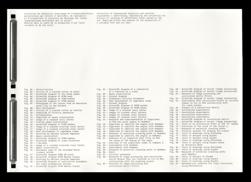 A collection of theoretical resources and personal experiments that try to identify, reproduce, and automate the process of cracks in typographic shapes caused by the sun.